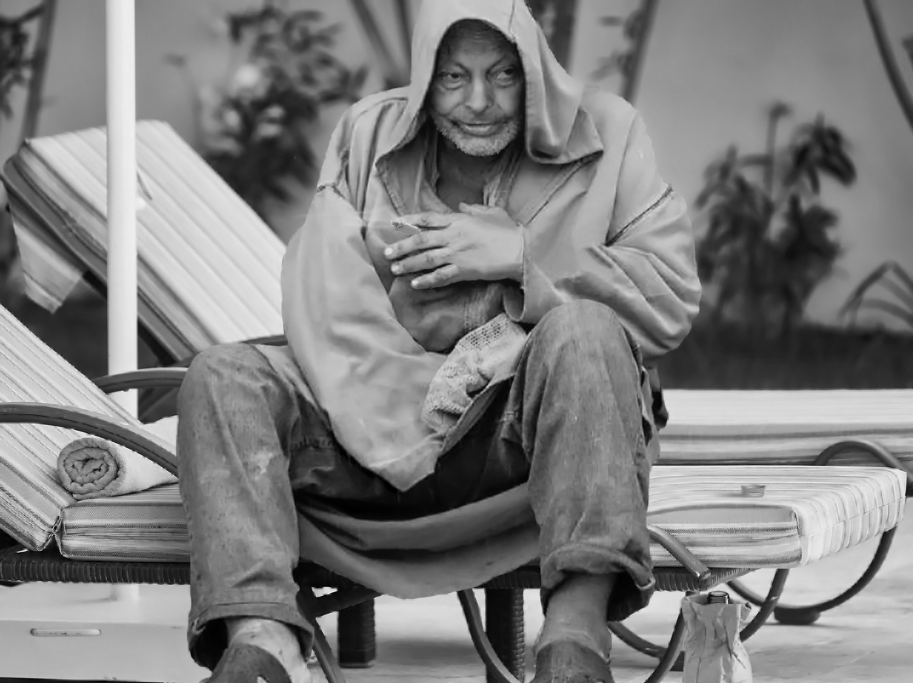 I love B/W. he seems a little large compared to the lounge chair.